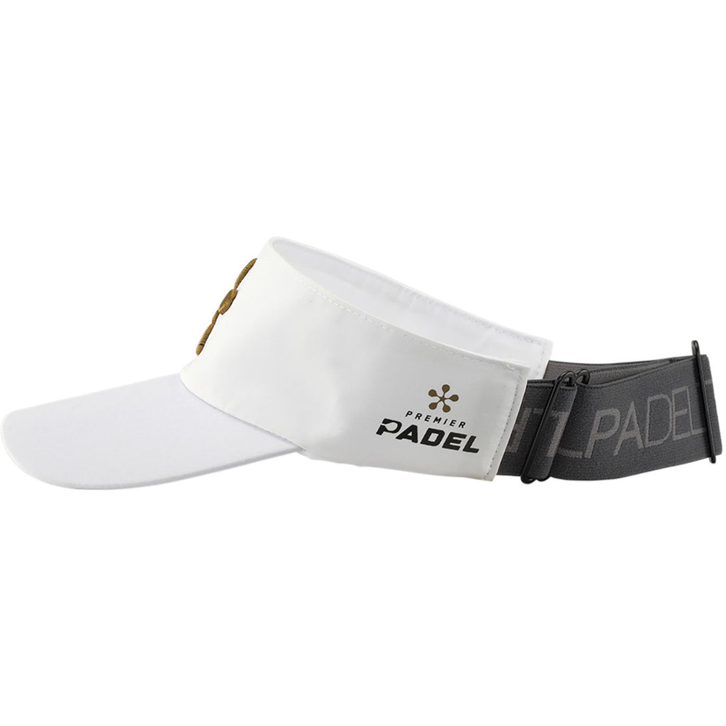 Dankzij de verstelbare sluiting past de visor zich moeiteloos aan jouw hoofdvorm aan voor een perfecte, stabiele pasvorm. Het stijlvolle Premier Padel-logo geeft de visor een professionele en sportieve uitstraling, zodat je met vertrouwen én klasse de baan op gaat.