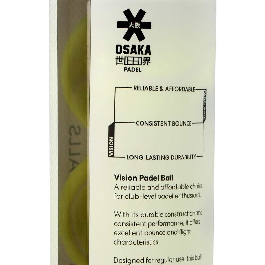 De Osaka Vision Padel 3 St. uit de 2024–2028 collectie is een ideale keuze voor padelliefhebbers die zoeken naar een betrouwbare, duurzame en betaalbare bal voor dagelijks gebruik.